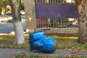 Сброшен с постамента 2 октября 2014 года.