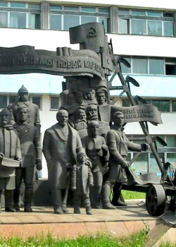 Довоенный памятник у здания ДК БМЗ в Бежице (Орджоникидзеграде). |