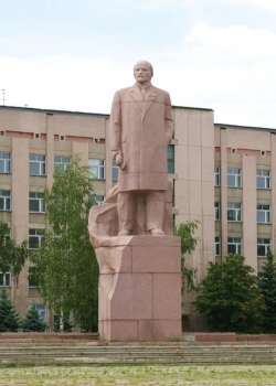 У здания "Донбассэнерго".Установлен в 1949 году, демонтирован в 1950-ых годах.